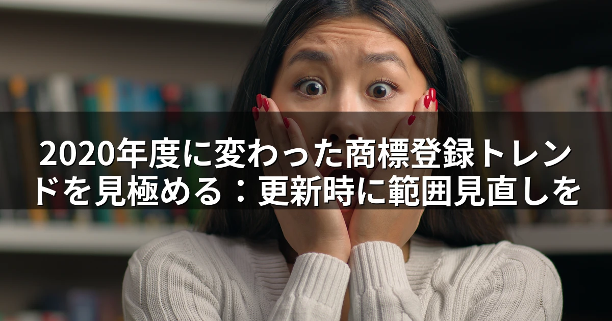 2020年度の商標登録データを調べたところ、権利範囲を狭くした出願が増えていました。追加料金なしで取得できる範囲をあえて切り捨て、最低限の範囲だけで出願するケースが目立ちます。更新時期を迎える時期に、権利取得漏れの点検が必要です。