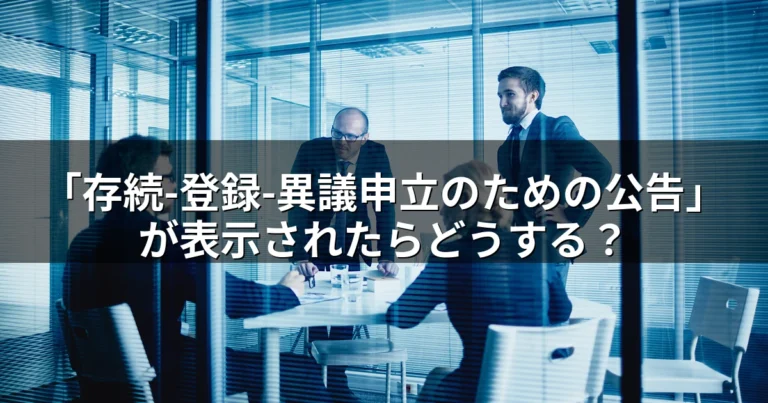 「存続-登録-異議申立のための公告」が表示されたらどうする? 2026年3月4日 by 所長弁理士 平野 泰弘 索 引1. 「存続-登録-異議申立のための公告」とは?2. 異議申立制度の詳しい仕組み3. 検索システムの各種表示の読み方4. 実際の検索システム画面での確認方法5. 商標権者が取るべき対応6. 異議申立が実際に提出された場合の対処法7. 異議申立制度の社会的意義8. 実務上の注意点9. まとめ 商標登録の手続きを進めている方なら、特許庁の検索システムで「存続-登録-異議申立のための公告」という表示を見かけたことがあるかもしれません。Read more